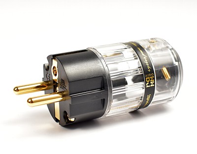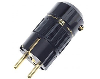Conector Schutzkontakt cu lame din Argint pur tratat criogenic. Corp Aluminiu/Fibră de Carbon. 16A, 250V.
