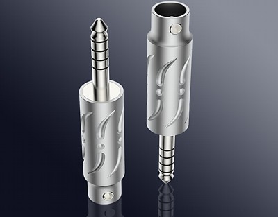 Pin central din Cupru 1100 (conductivitate 102%) şi retur din Cupru-Teluriu (99,5% Cu) placate cu Argint. Asamblare conductor cu şurub. Acceptă cablu Ø8,3mm. Lungime totală 37,5mm.