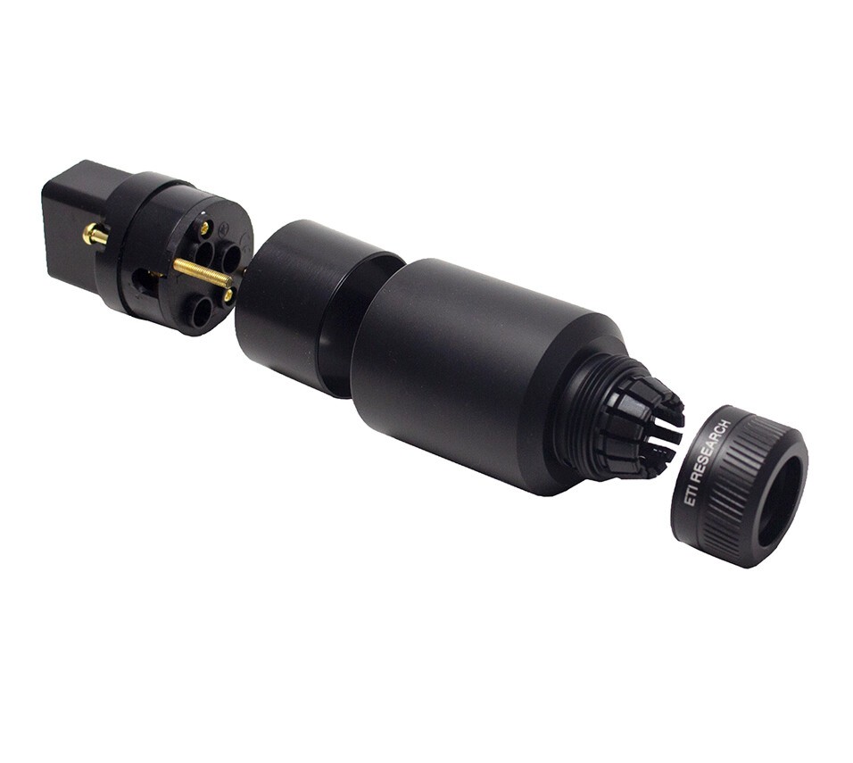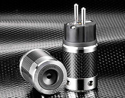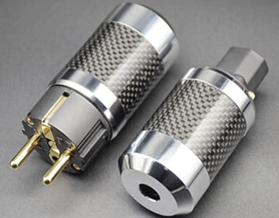 Conector Schutzkontakt cu lame din Argint pur tratat criogenic. Corp Aluminiu/Fibră de Carbon. 16A, 250V.